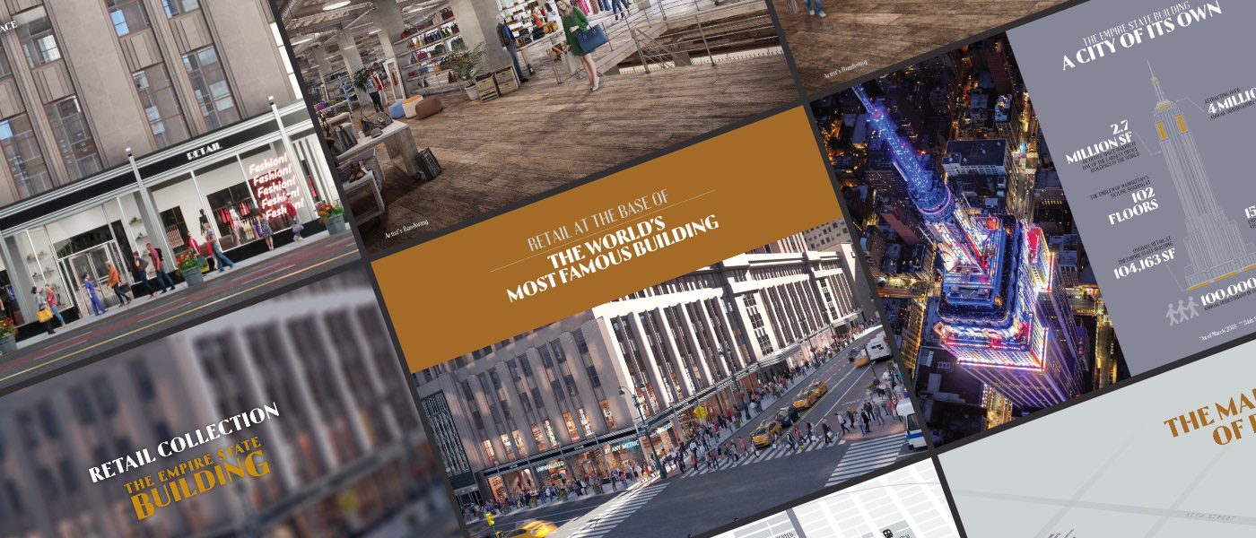 Develop a marketing strategy and create collateral that highlights the unique features, amenities, and prestige of leasing space in the Empire State Building, ultimately driving lease agreements while utilizing existing brand elements.